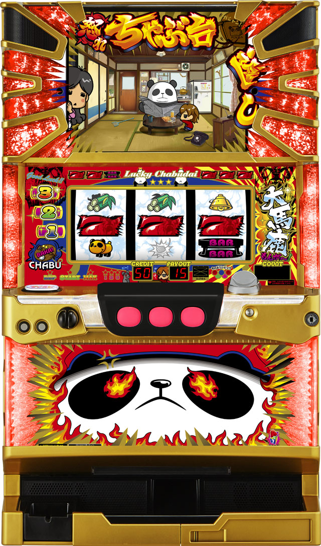 また、告知パターンは3種類から選択可能(PUSHボタンで選択)。お父さんパンダを様々な方法で怒らせる「イラっとちゃぶ台モード」、怒りカットイン発生で大チャンスとなる「怒気っとちゃぶ台モード」、BAKAも〜んランプ点灯でボーナス確定となる「バカっとちゃぶ台モード」から選択できる。