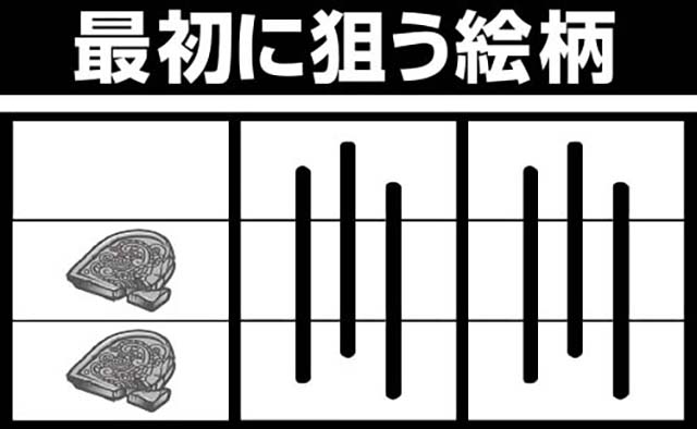 チャンス目を全て1枚役で獲得するため、まず左リール中・下段に1番のブランク絵柄を狙おう(枠下に白7を遅めに狙う)。