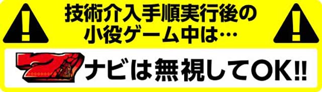 なお、技術介入実践後の小役ゲーム中に「赤7を狙えナビ」が出現した場合はナビを無視してOKだ。