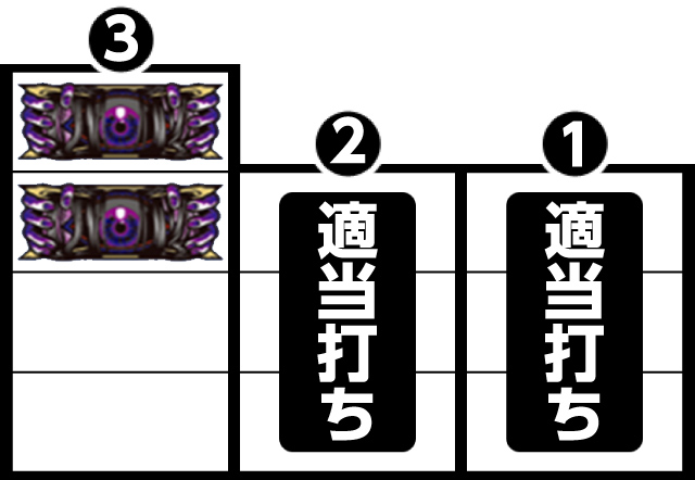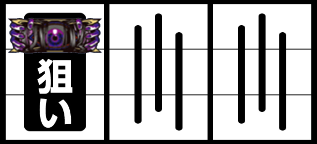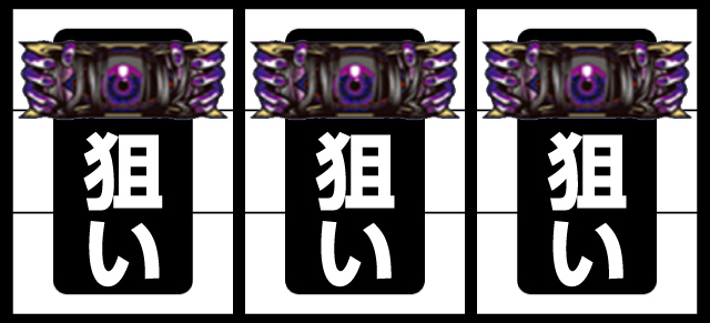 右・中リールを適当打ち後、左リール枠上〜上段に3番の邪眼絵柄狙い。