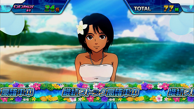 AT中は演出モードが2種類(波多野周回モード・青島告知モード)存在し、プレイヤー側が任意で選択可能。それぞれ上乗せや継続の告知パターンが異なるぞ。