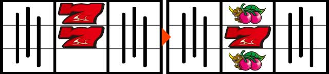 成功した場合は中リールにチェリー・赤7・チェリーが停止する。