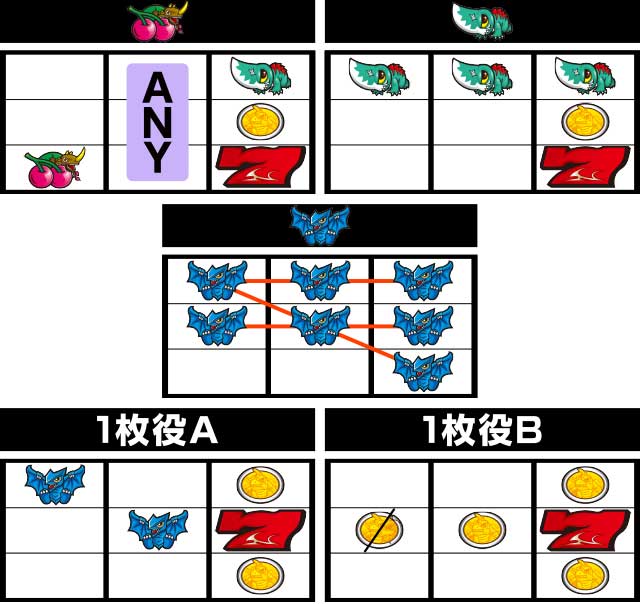 1枚役はAとBの2種類存在し、停止形は順押し時と同様。