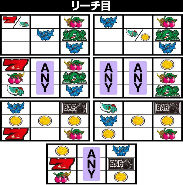 リーチ目の停止形は複数存在し、右リール下段ガメラ停止はBIG濃厚となるぞ。
