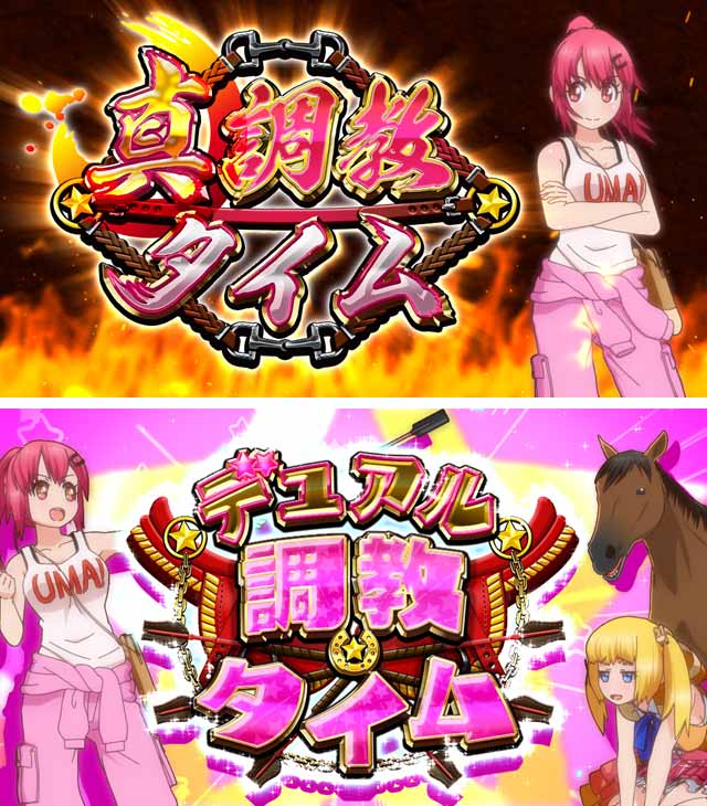 真調教タイムは育成馬レベルの大量レベルアップに期待でき、デュアル調教タイムは育成馬レベルだけでなく、後輩調教師レベルアップ抽選も行われる。