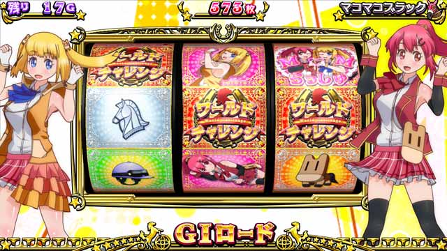 AT中は主にレア役成立時に「直乗せ抽選」「ワールドチャレンジ(※)抽選」「MM♡らっしゅ(はいぱー)抽選」が行われ、重複当選する可能性もアリ。直乗せ当選時は10〜300Gの上乗せ確定となるぞ。