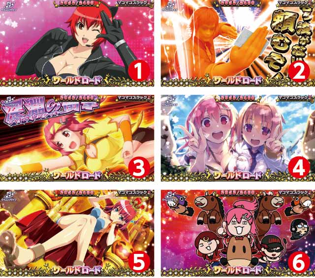 ワールドロード中は成立役を参照してイラスト出現抽選が行われる。イラストごとに設定示唆内容が異なり、なかには高設定濃厚パターンも存在する。