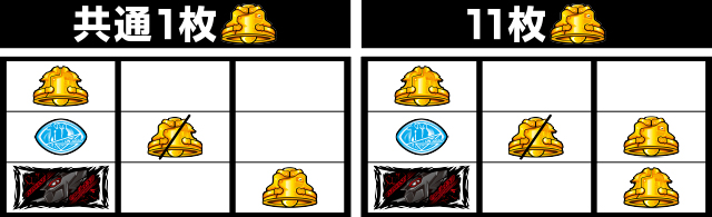 | 共通11枚ベル | 押し順不問で必ずベル揃い |