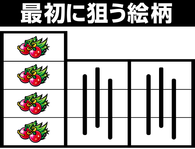 まずは左リール枠上〜下段にチェリーを狙おう(BARを目安に)。