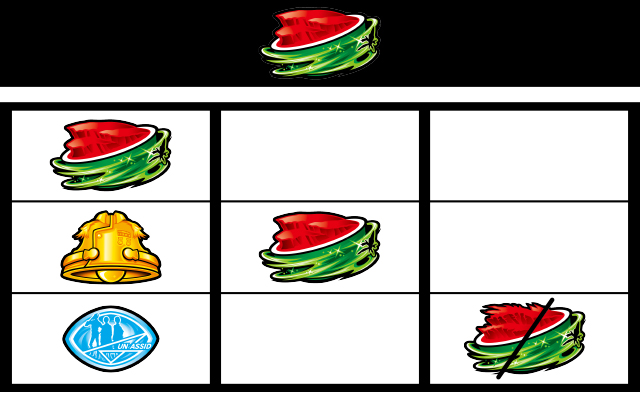スイカフラグは1種類のみとなっており、必ず右下がりに入賞する。