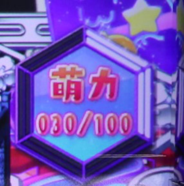 AT中は萌力ポイント表示箇所の周りが"にゃんにゃんカウンタ"になっており、SIN成立時に点灯抽選が行われる(上の写真は2個点灯中)。そして、全点灯した場合は上乗せ特化ゾーン「にゃんにゃんちゃーじ」突入抽選が行われ、数ゲームの前兆を経由してから当否が告知される。