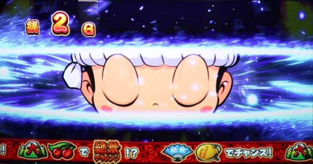 ドン開眼演出はリール停止ごとにドンちゃんのカットインがステップアップしていき、最終的にドンちゃんが開眼すれば絶景チャレンジ確定。発生した時点で小役以上が濃厚となり、CHANCEボタンが出現すれば絶景チャレンジ当選に期待できる。