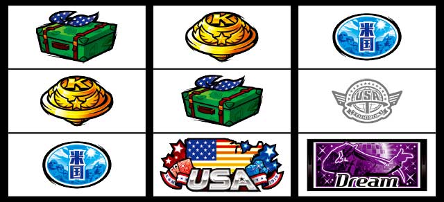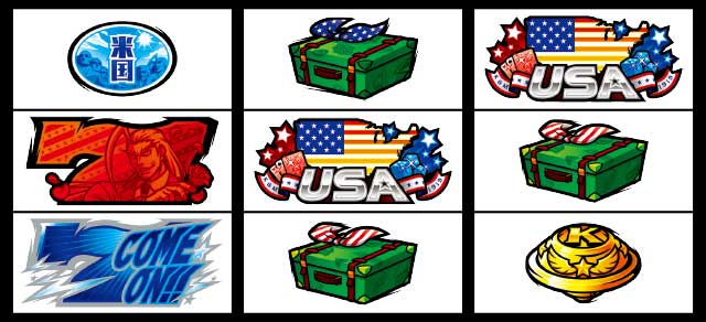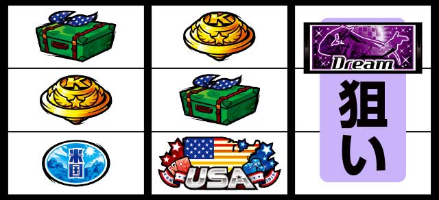 中リール枠上・上段にUSA絵柄を狙い、