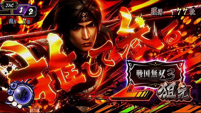 なお、リール始動時にカットインが発生すればその時点でBAR揃い濃厚だ(カットイン発生時に戦国ラッシュランプが点滅した場合もBAR揃い濃厚)。