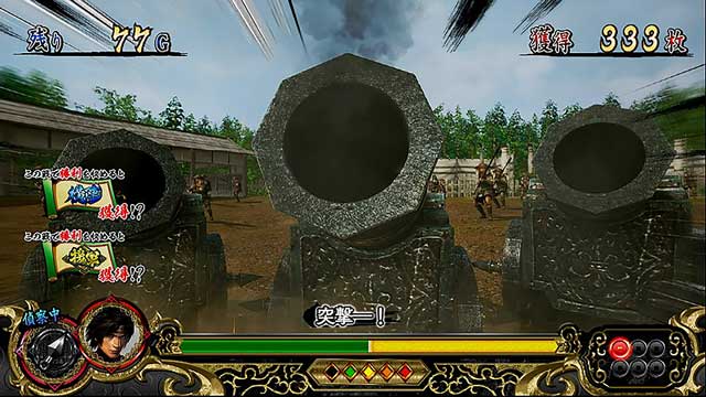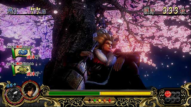 会話ウィンドウ演出でくのいちの青or赤セリフが発生すればくのいち参戦のチャンスとなる。