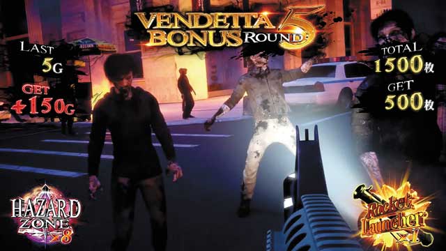 ヴェンデッタボーナスはメインパートとハザードゾーンの2パートで構成されており、開始時はメインパートからスタート。メインパート消化後はハザードゾーンへ移行し、ここではセット継続抽選が行われ、当選すれば再びメインパートへ移行する。