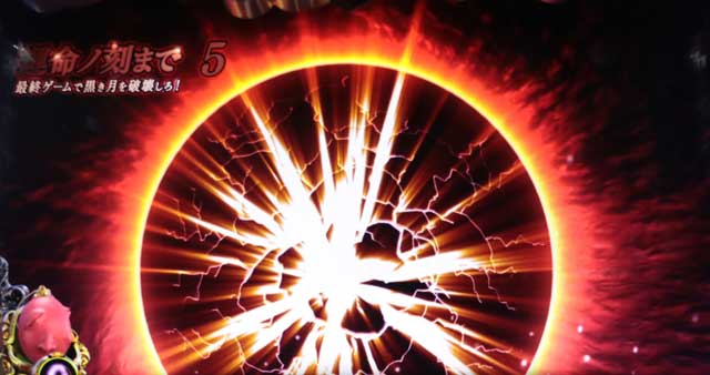 運命ノ刻中は鉄塊ランプ(リール下)の色で成功期待度を示唆しており、白<青<緑<赤<レインボーの順で期待度がアップする。