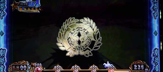 | 家紋(中)出現で本前兆期待度アップ、家紋(大)出現で本前兆濃厚。予告音ナシで家紋演出が発生した場合はCZorAT濃厚 | |