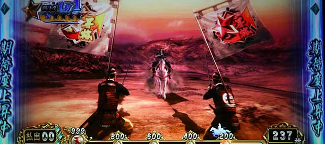 単騎特攻・奥州流星群中は「発展」アイコン出現→連続演出に発展…というのが基本の流れ。連続演出発展時に次回予告を経由した場合はCZ以上濃厚となる。