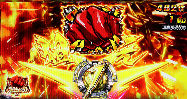 獲得枚数表示時にいつもと違う特殊音が発生すると不屈チャレンジ当選のチャンスとなる。