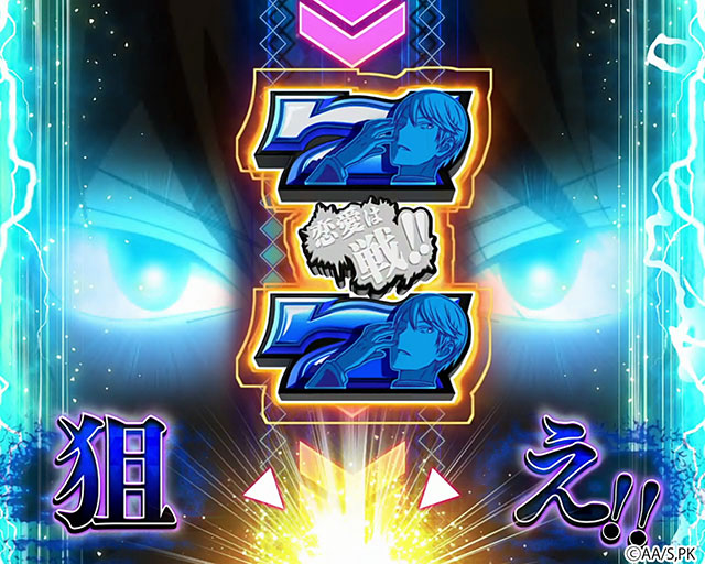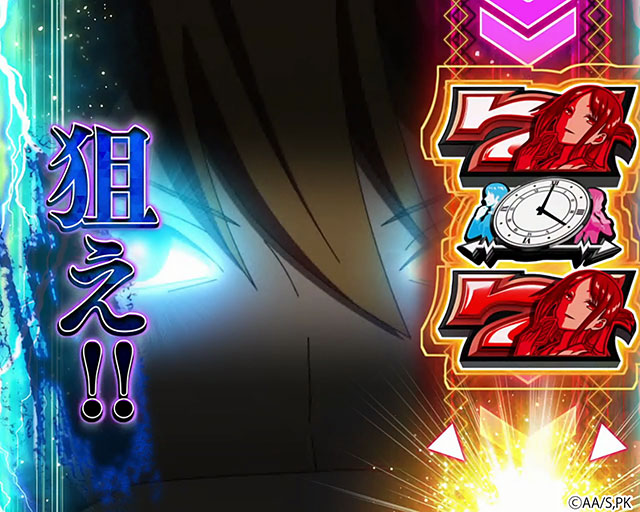 白銀覚醒中は1G消化ごとにサンド目を狙え!!カットインが発生し、指定絵柄停止で1G連ストック当選…というゲーム性(カットイン発生ゲームは擬似遊技)。青7サンド目が停止した場合はBIG、赤7サンド目が停止した場合はスーパーBIGの1G連ストック濃厚だ。