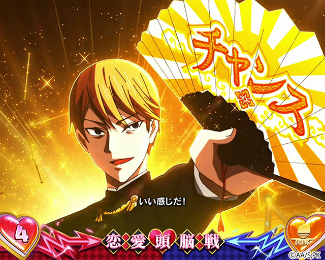 前兆ステージ中のチャンス目入賞時に心音演出(ピンクハート)が発生すると、その時点で当該チャンス目での書き換え濃厚となり、CZorボーナス当選が約束される。