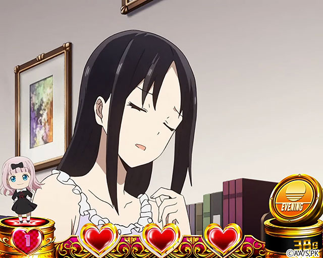 今消化している前兆と前回の前兆で発展した連続演出が同じだった場合はCZ以上濃厚となる(例:今回「かぐや様は誘われたい」発展、前回「かぐや様は誘われたい」発展)。