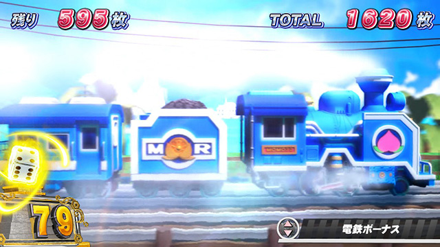 「電鉄ボーナス」は初期差枚数150枚の差枚数管理型ATで、純増は2.5枚/G。消化中はレア役成立時に高確移行・直乗せ・サイコロゾーン(※)抽選、規定ゲーム数到達時にサイコロゾーン抽選が行われる。