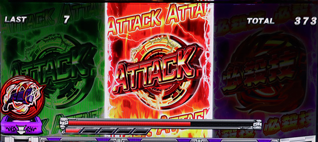 攻撃ルーレット演出発生でダメージ濃厚となるが、攻撃ルーレット演出→第3停止に攻撃発生で追撃も濃厚となる。