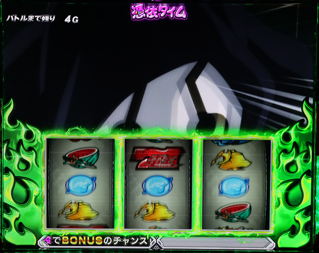 チャンスパターン出現+レア役非成立でボーナス当選濃厚。