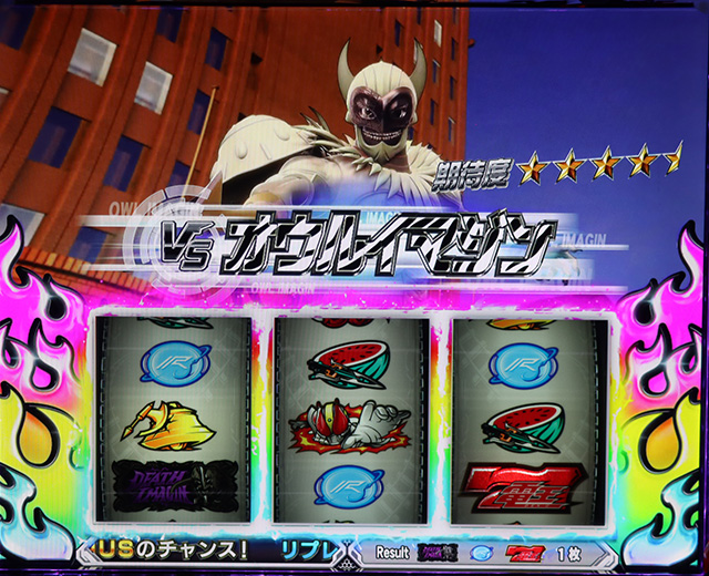枠色が緑・赤以外でロゴ発光(赤)が発生すればボーナス濃厚。なお、枠色がレインボーなら毎ゲームでチャンスパターンが出現するぞ。