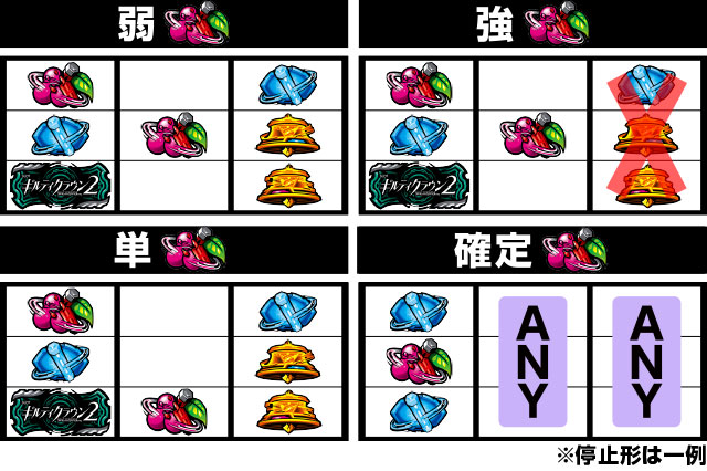 | 共通ベル | 押し順不問で2枚ベル入賞 |
