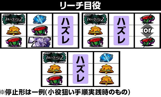 リーチ目役の停止形は複数存在し、成立すればボーナス確定だ。