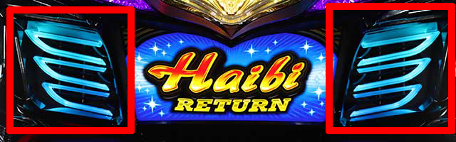 ボーナス終了時は筐体上部のフェザーランプ(カコミ部分参照)に注目。ランプの色で設定を示唆しており、紫なら設定4以上濃厚、虹なら設定6濃厚だ。