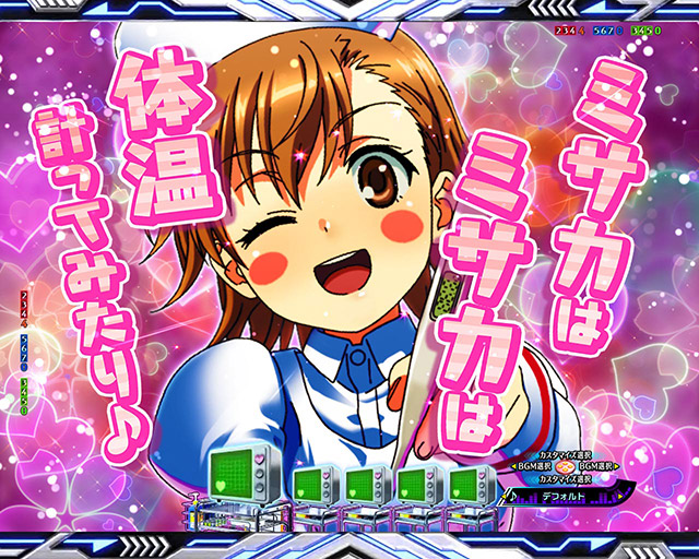 | ミサカ10032号脱落 ミサカ13577号脱落 ミサカ19090号加速 | 大当り濃厚 |