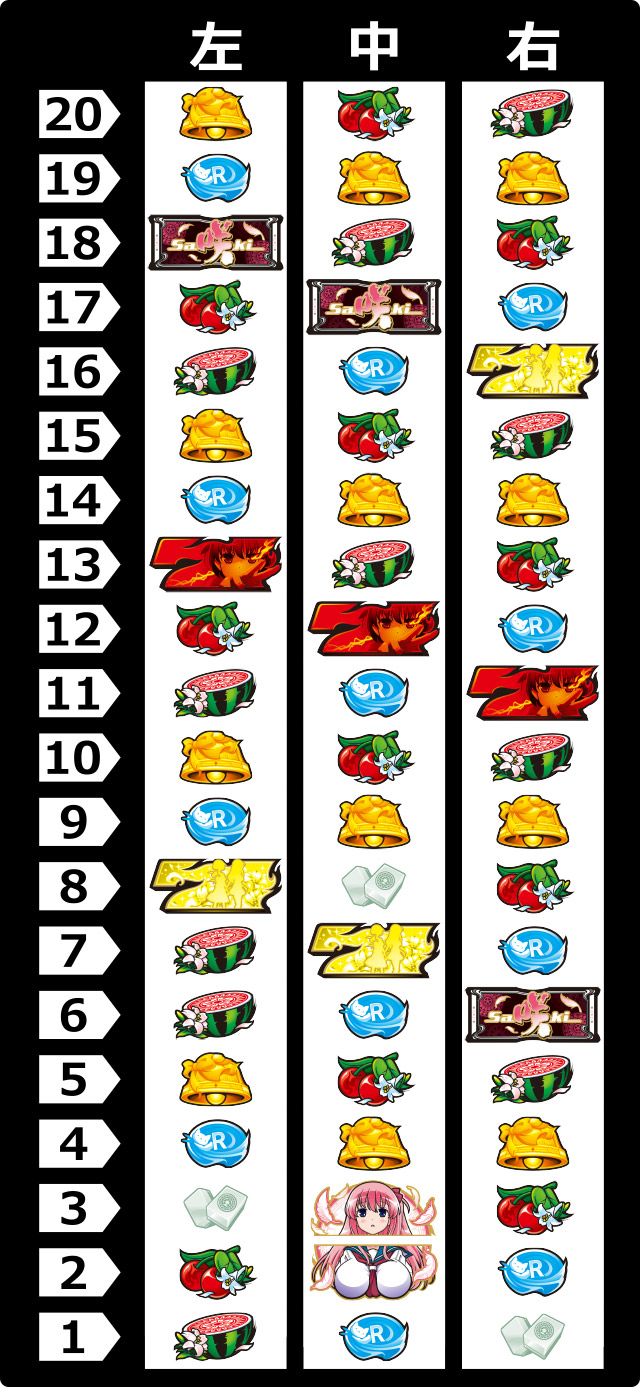 チェリーフラグは弱・強の2種類存在し、チェリーの強弱は右リール中段の絵柄で判別できる。