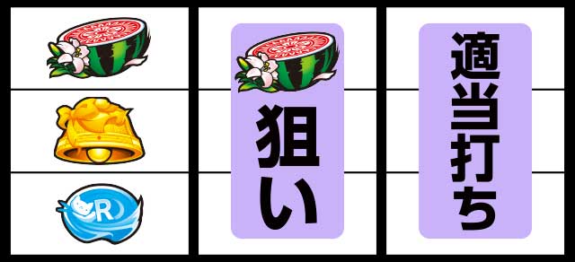 左リール上段スイカ停止時は中リールにスイカを狙えばOK。なお、それ以外の停止形は適当打ちで問題ないぞ。