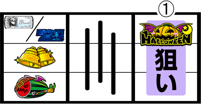 中リール上段にBARがすべってきた場合は、左・右リールにカボ絵柄を狙ってチャンス目1枚役をフォローしよう。