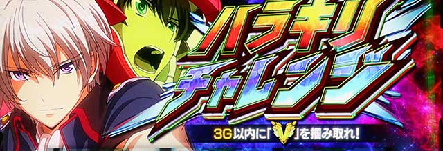 ハラキリチャレンジ中に「ハラキリドライブ」が発生した場合は50or100G告知が発生。100G告知となった場合は追撃ドライブが発生する可能性もあり、以降はループ抽選に漏れるまで100Gを上乗せし続けるぞ。