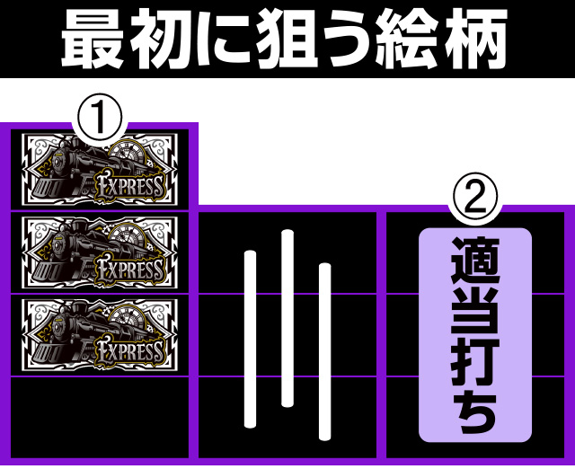 まずは左リール枠上〜中段にBARを狙い、右リールを適当打ちしよう。