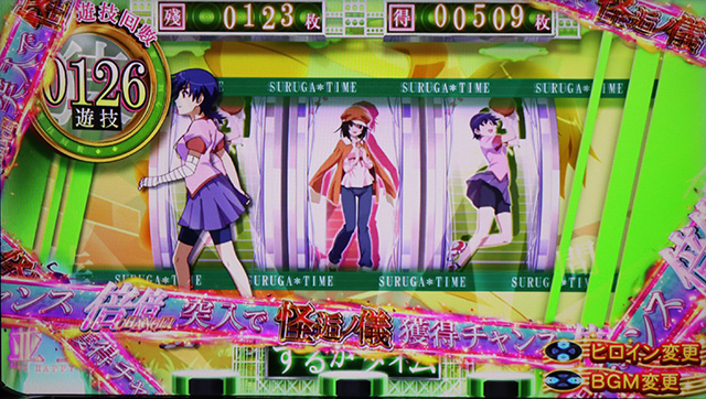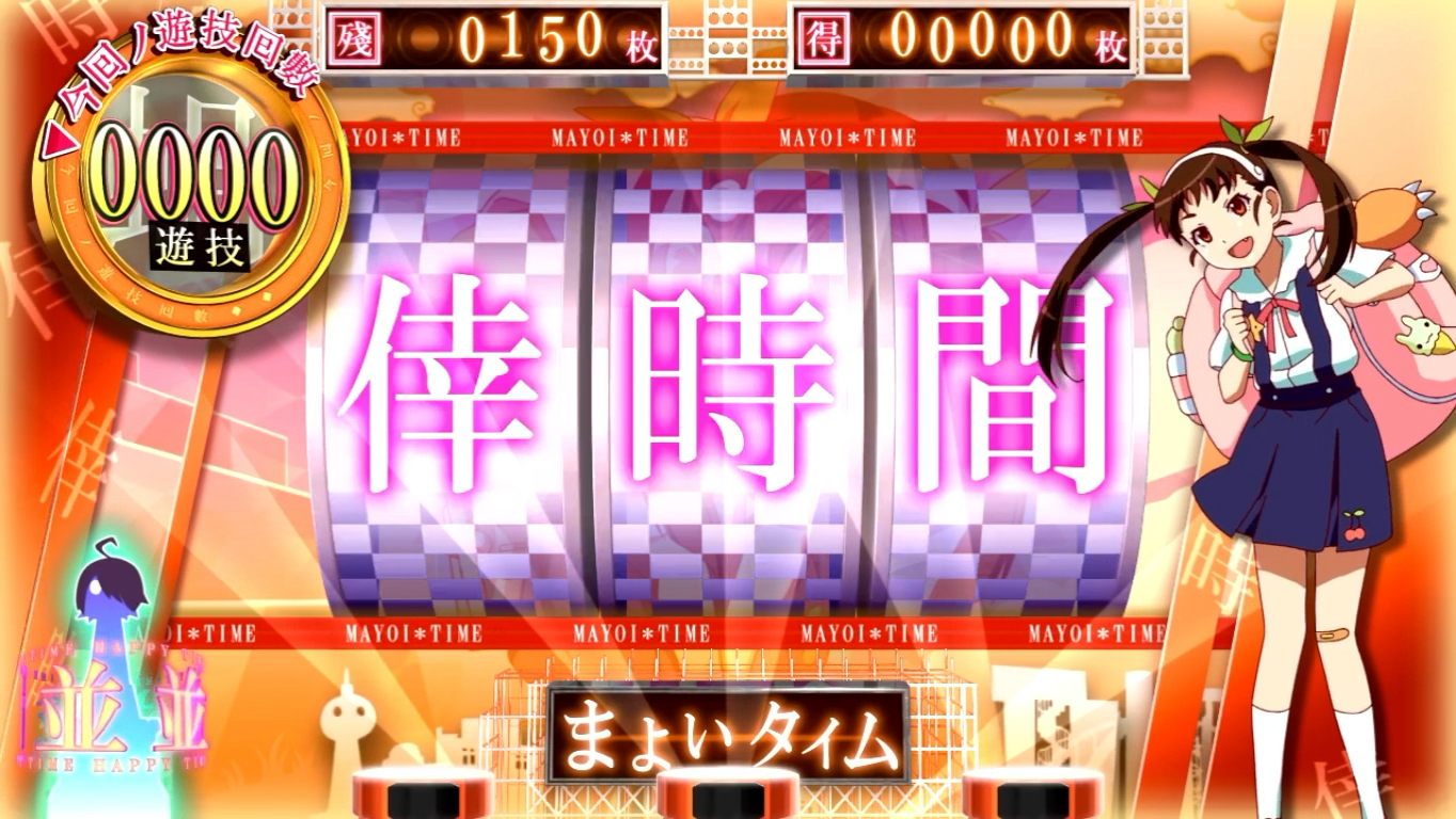 倖時間(ハッピータイム)は差枚数管理のATで、純増は約2.7枚/G。消化中はレア役・怪異絵柄出現で倍倍チャンス・ボーナス当選に期待でき、メインの当選は倍倍チャンスとなる。