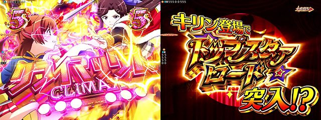 初当り獲得後は50%でST「トップスタァロード」に突入。甘デジは初回のみST回数が45+4回で、2連目以降はST回数が100+4回となり、継続率が約77%にアップする。