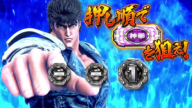なお、7揃いのラインでATレベル(後述)を示唆しており、7を狙ってハズれた場合は北斗揃い濃厚(ATレベル3or4濃厚)となる。また、AT開始時のケンシロウのオーラでATレベルを示唆しているぞ(白<青<黄<緑<赤<紫<レインボーの順に期待できる)