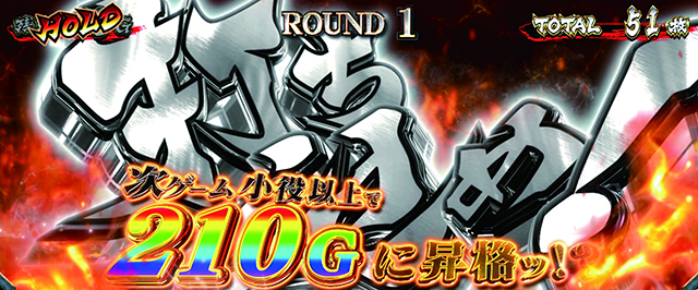 ゲーム数上乗せ時は必ず1G完結の「乾坤一擲チャンス」に突入。ルールは非常にシンプルで、小役(1/4.4)が入賞すれば3ケタ上乗せが濃厚となるのだ!