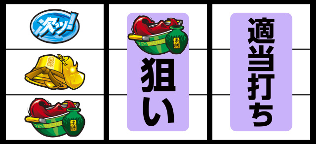 左リール下段スイカ停止時は中リールにスイカを狙う(右リールは適当打ちでOK)。なお、それ以外の停止形は残りリール適当打ちで問題ない。