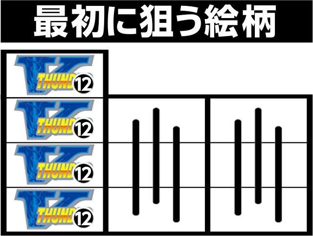 まずは左リール枠上〜下段に12番の単独Vを狙おう。