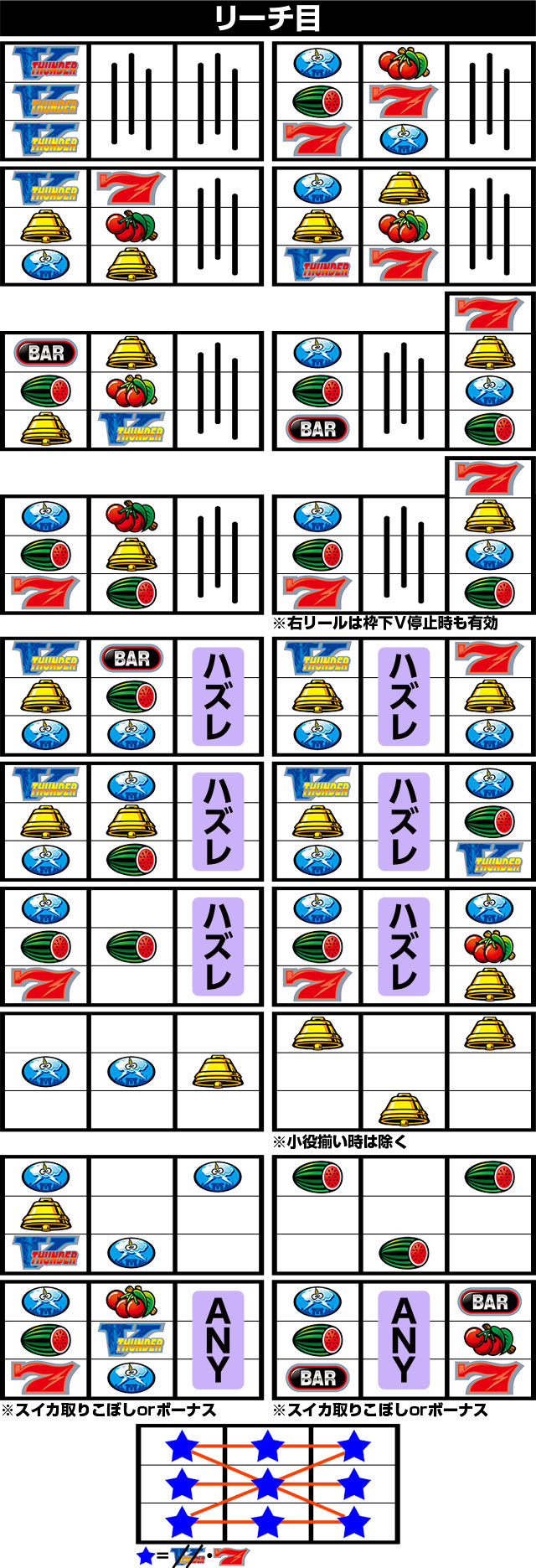 チェリーフラグはチェリーA・チェリーBの2種類存在し、チェリーA同時当選時はリーチ目が出現しやすい。