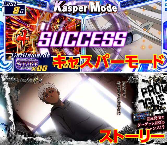 キャスパーモードは消化中に発生する"ミッション"を成功すればATゲーム数上乗せorストーリー、ストーリーは成功すればゲーム数上乗せ特化ゾーン当選となるぞ。