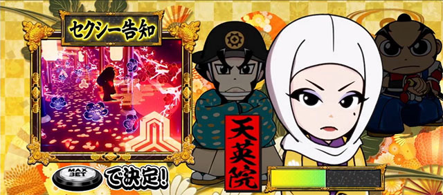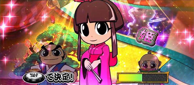 キャラクターBBパート開始時は成敗役(大奥BB選択時は寵愛役)が決定され、成敗役対応のレア役は1G連当選率がアップするぞ(成敗役対応の強レア役は1G連濃厚)。