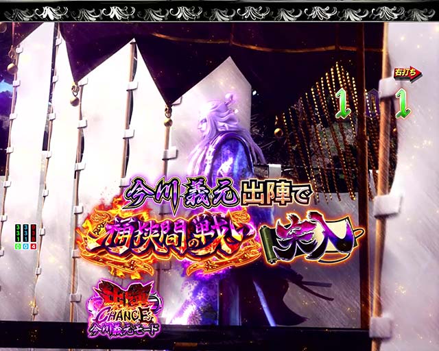 そして、桶狭間の戦いで今川義元に勝利(期待度約50%)すれば、タイムアップまで大当りを引きまくる「戦極最強の刻」(100秒モード)or「極・戦極最強の刻」(300秒モード)へ突入!